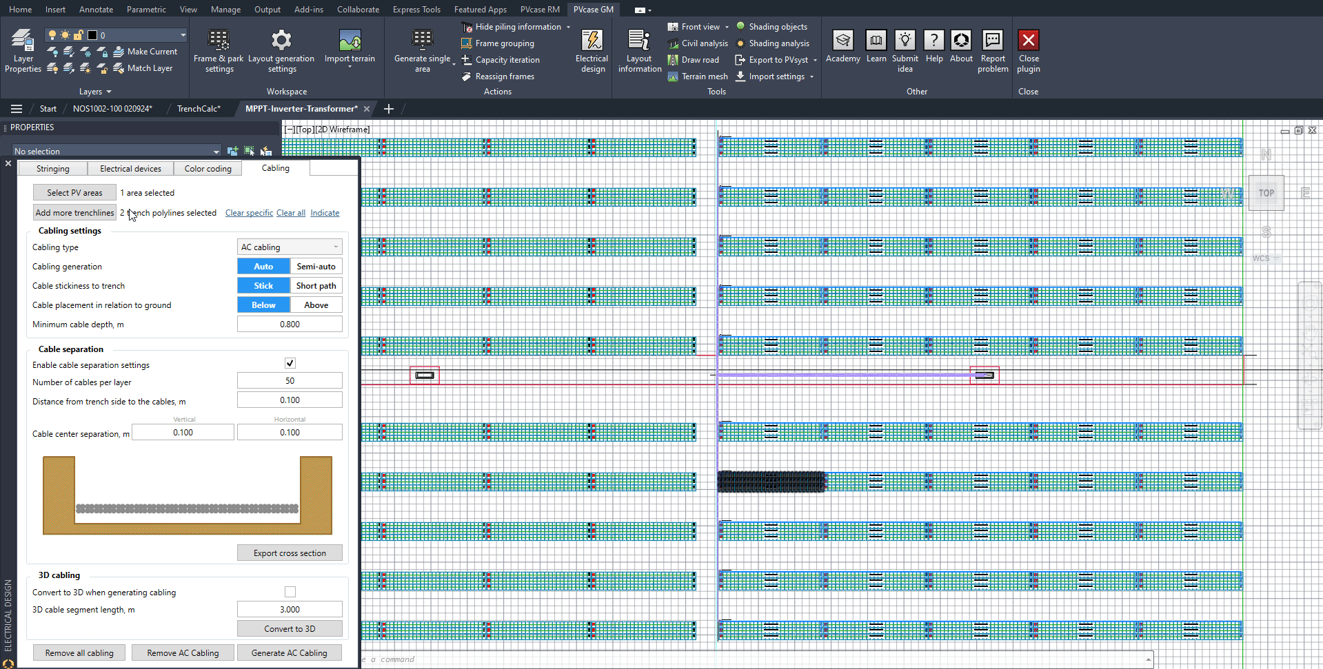 If satisfied with the electrical design generated, the next step is to generate the cabling. To guarantee a proper routing of the cables, the adequate selection of trenches is critical.