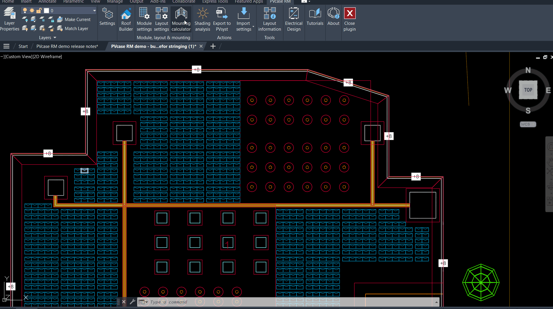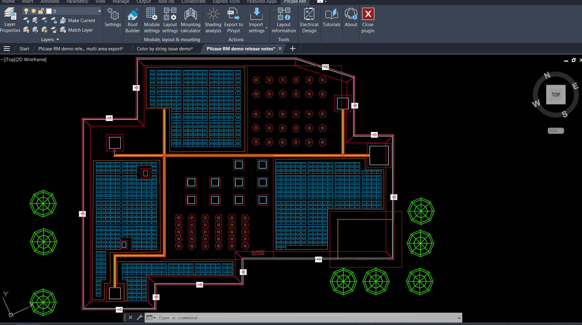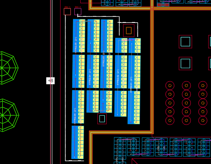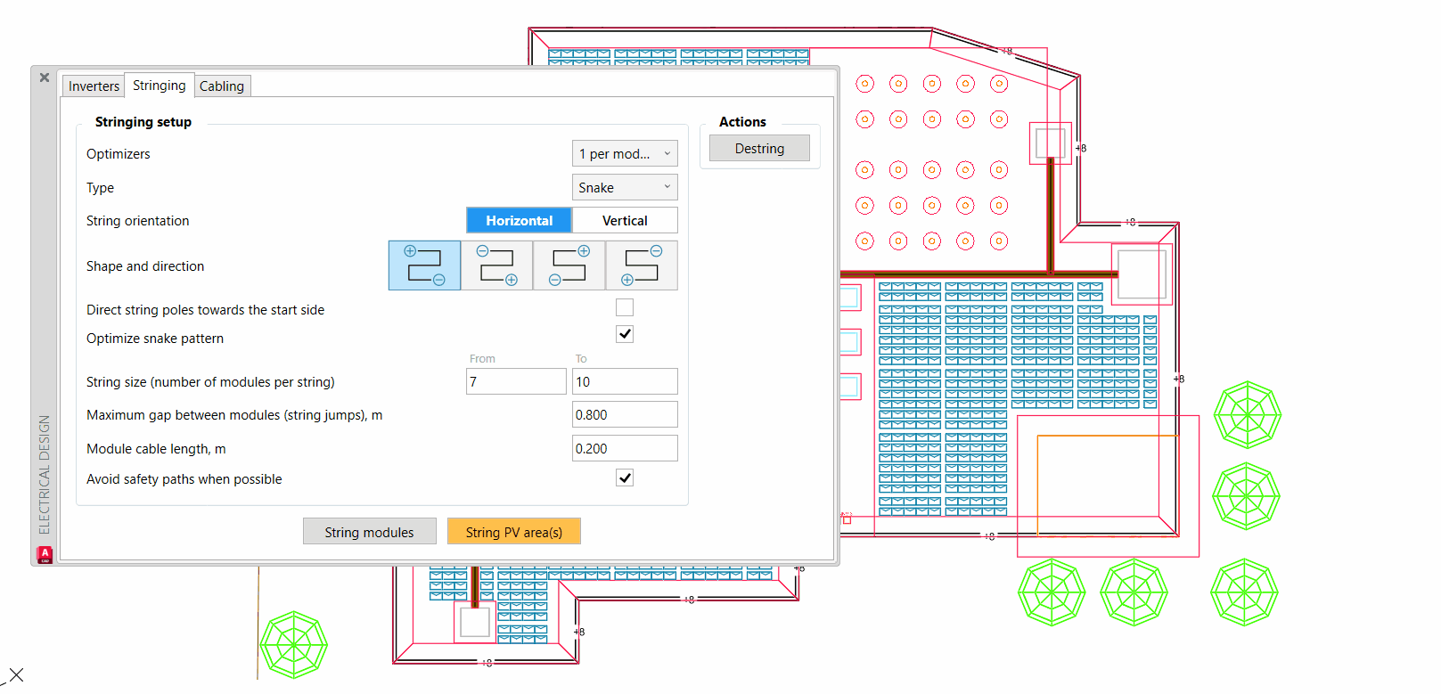 To improve visibility, we have changed the coloring method for Color Modules by Inverters and by String to be color hatches over the modules. Moreover, East and West modules can now be colored separately if they are assigned to different inverters. With this enhancement, project engineers and installers can quickly and accurately identify which strings belong to which inverters.