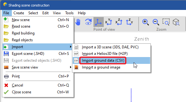 Once in PVsyst, the user would proceed to the "Near Shadings" scene and select to Import the PVC file: