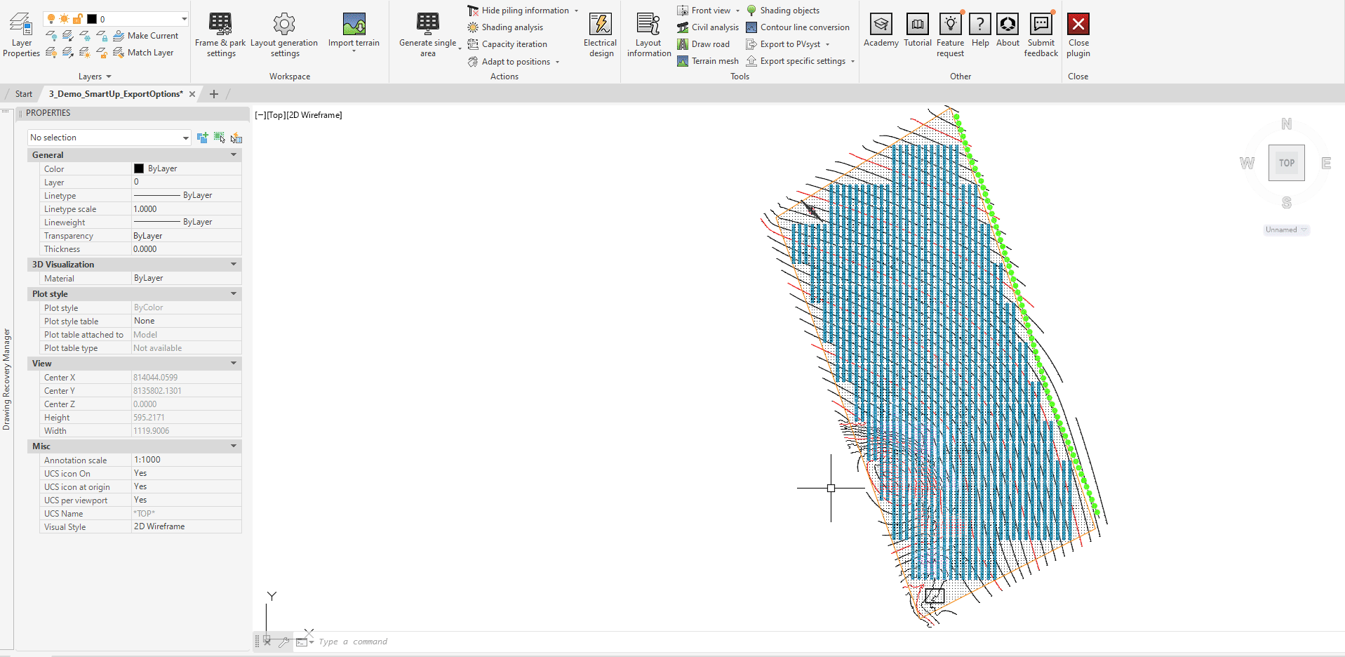 The terrain will be exported as a CSV file and the frames and shading objects will be exported as a PVC file.