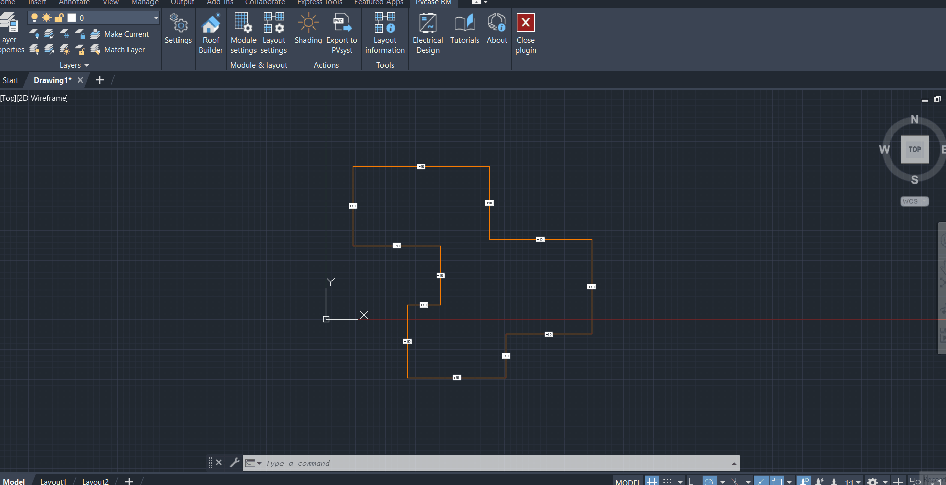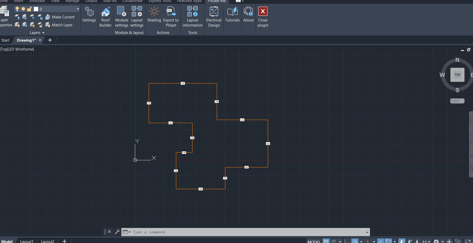 How: When clicking 'Place modules', you need to mark the area or roof and draw the alignment line and click enter. The alignment line can be multi-vertex and can be drawn outside the building.