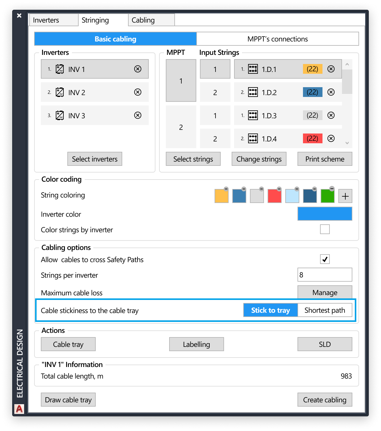 What: We have introduced a new functionality allowing users to choose their preferred cabling behavior. Users now have the flexibility to determine whether cabling should strictly follow the cable tray or take the shortest path.