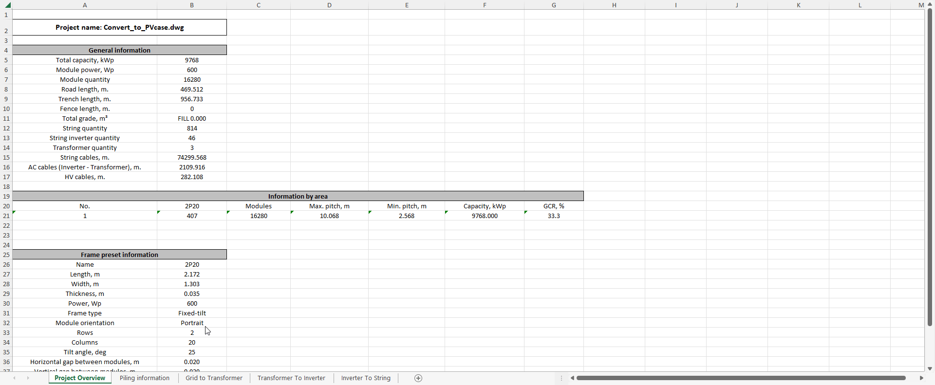 In the case a system with Central inverters is used, instead of AC and DC cabling, there will be the options to do DC Main cabling (from combiner box to inverter) and DC string cables (from strings to combiners).