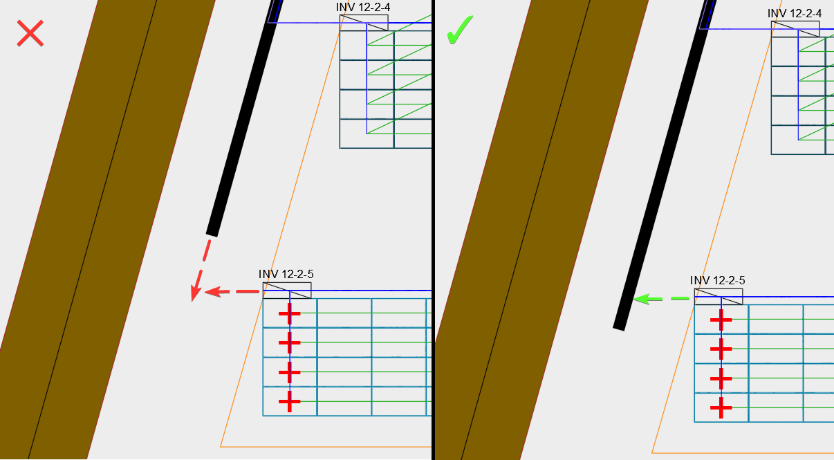 Cabling for some devices is not possible. Please check if the intersection with trench lines is possible for all devices.