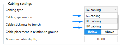 Let us start with DC cabling. After choosing the cabling type, you need to choose Cabling generation type. For that, you have 2 options: