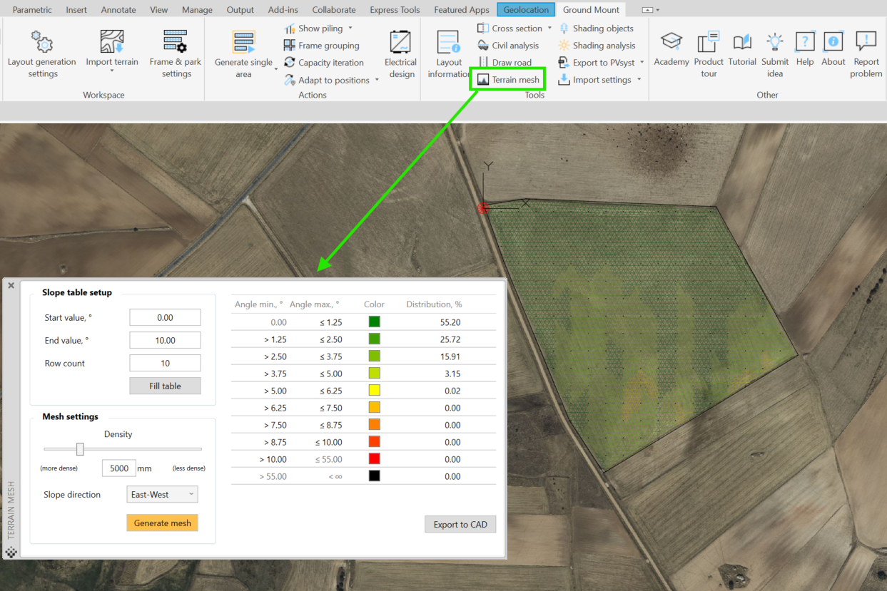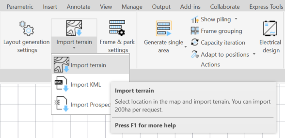 The PVcase Import terrain feature enables you to bring in fundamental topographical data directly from Google's worldwide terrain database. You can start preliminary project design, even if the final topographic data for your site is not yet ready.
