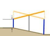 Minimum Ground clearance distance is measured from the terrain to the lower edge of the table at its maximum rotation (i.e. 55º, depending on the setting in "Frame creation"), as marked with the blue lines: