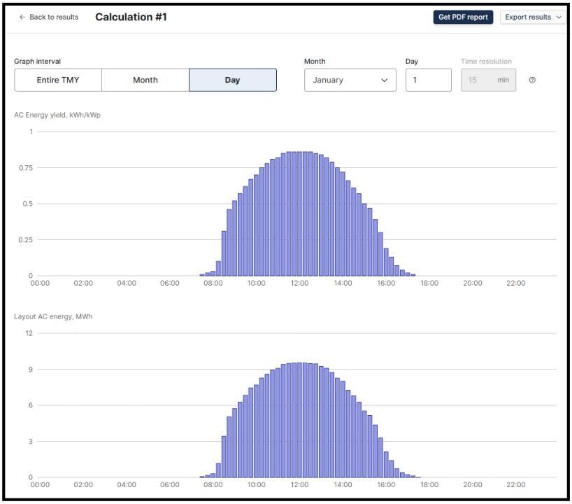- Granular PDF and CSV Exports: The sub-hourly accuracy carries completely through to your final deliverables. You can now export PDF reports reflecting the high-resolution summaries and download the full 35,040-row CSV file for external analysis or BESS modeling.