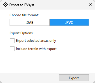 We've revisited the user experience and how Export to PVsyst works. Instead of 2 separate buttons in the ribbon, we've moved it to the export window, which looks familiar, but with an additional 2 options: