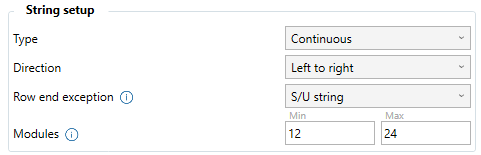 - Under Electrical Design, Stringing, choose Continuous Stringing in the String setup dropdown.
