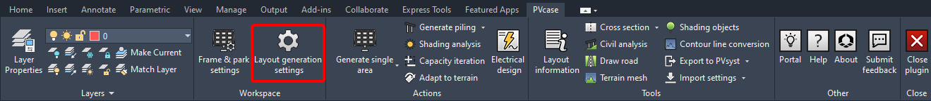 Por defecto, todas las superficies cerradas que se encuentren en la capa PVcase offset son consideradas como áreas restringidas para PVcase. Es posible cambiar la capa que PVcase tomará para las restricciones a través del menú de Layout generation settings.